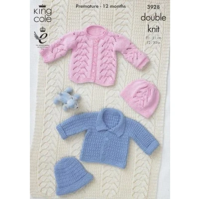 King Cole Babies Jackets, Hats and Blanket Cottonsoft DK Knitting Pattern 3928 by