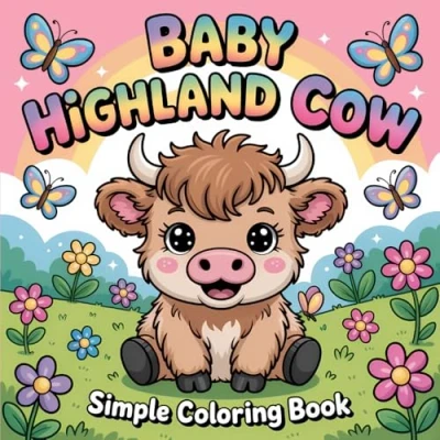 Baby Highland Cow Simple Coloring Book: Beautiful and Cute Scottish Cows Bold Easy Illustrations for Relaxation Creativity