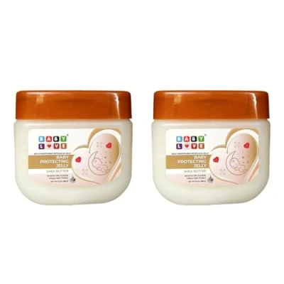 BABY LOVE NURSERY PETROLIUM JELLY WITH SHEA BUTTER SKIN PROTECTANT & MOISTURIZER PURPOSE: SKIN PROTECTANT HELPS TREAT AND PREVNT DIAPER RASH. PROTECTS CHAFED SKIN DUE TO DIAPER RASH. HELPS SEAL OUT WETNESS. 2 x 368g