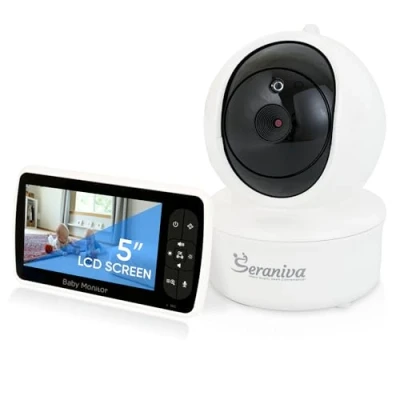 Clear Video & Audio Keep an eye on your little one with a baby monitor with camera and audio no wifi that delivers sharp 720P resolution on a 5'' LCD screen. With two-way talk and controllable brightness/volume, you can see and hear your baby clearly day or night, without relying on an internet connection. Night Vision & Safety This video baby monitor with camera and audio ensures peace of mind with automatic night vision up to 15ft, temperature display with alarm, and ECO mode for 23–30 hours battery life. Low signal & power warnings keep you informed, making it a reliable choice for overnight monitoring. Wide Coverage Range Stay connected anywhere in your home with a long-range baby monitor camera audio offering up to 260m outdoors and 40m indoors. The secure 2.4GHz FHSS technology prevents interference, while the 180° screen rotation and 4x zoom let you adjust viewing angles with ease. Pan, Tilt & Multi-Camera Expand your monitoring with support for up to 4 cameras. The baby monitor with camera and audio wireless system lets you pan 355°, tilt 120°, and zoom for closer views. Perfect for watching twins, multiple rooms, or keeping track of active toddlers. Soothing Lullabies & Timer Comfort your baby remotely with 8 built-in lullabies while managing your routine using the clock & timer settings. This baby monitor with camera and audio VTech alternative is designed with multi-language support, a strong signal, and user-friendly button operation for parents’ convenience., Manufacturer: Seraniva