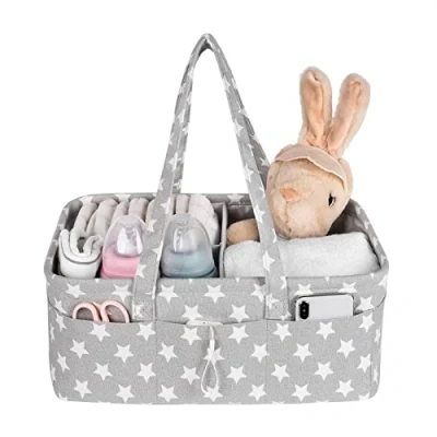 Material and Size: Crafted from felt fabric in a neutral gray color with stars printing, this nappy bin coordinates well with many color schemes. We made this organiser lasting and durable with strong construction to ensure it can withstand heavy items, without collapsing or breaking. Our lightweight, skin-friendly and convenient diaper bag are one of the best toiletries for new born. Modular Design: Need compartments or a large space for your nappies station organizer? No worries, its adjustable divider and drawers gives you enough space for storage of your little one's stuff i.e nappys, toy, hampers, baby book, socks, doppler, rash cream, wipes, bottles, girl dolls. Travel-Friendly: Portable enough to be carried anywhere in the house or onto car travel trips. Its practical design includes two handles for simple carrying. These baskets are collapsible and foldable when not used without taking up space. Easy to Use: You can fold and clean it as we have used waterproof EVA laminated on felt fabric for the folding flexibility and sturdiness as well as easy interior cleaning of this bin. Great Value for Money: Lovingly crafted to suit your every need, we're confident you'll find delight in this bag. But in case you're not happy with it, please let us know.