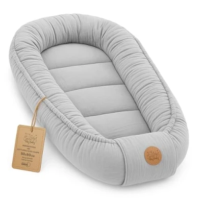 ๐ [MULTIFUNCTIONAL DESIGN] โ Versatile use: Baby nest is ideal for cribs, Moses baskets, bassinets, and travel. The baby nest is lightweight and portable, perfect for home and on the go. ๐ฌ๏ธ [SOFT AND BREATHABLE MUSLIN] โ Baby nest for newborns is made from high-quality muslin, which is especially skin-friendly and breathable. Muslin nest is optimal for sensitive baby skin. ๐งผ [EASY CARE AND STYLISH DESIGN] โ Easily washable at 30 degrees to simplify daily hygiene for parents. Available in various and modern colors that perfectly fit any baby equipment โ Baby Nest is ideal for boys and girls. ๐ก๏ธ [PROTECTED SLEEP ENVIRONMENT] โ The padded edges of the muslin baby nest create a safe barrier between the baby and adults, especially when co-sleeping. ๐ค [COZY ATMOSPHERE] โ The soft padded edges of the baby nest provide a comfortable and secure feeling that babies love. ๐ [CUSTOMIZABLE] - The baby nest can be adjusted in width using the cotton cord. With a length of 70 cm, the cord can be loosened to extend the cocoon up to 90 cm.