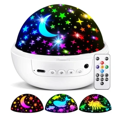 【7-IN-1 NIGHT LIGHT KIDS】Baby sensory toys for babies is absolutely worthy 7-IN-1 choice: 3 FILMS+93 EFFECTS+REMOTE+TIMER+3 BRIGHTNESS+360° ROTATION+EXQUISITE PACKAGE. Star projector night light kids sensory lights has 3HD Films-STARS&MOON,OCEAN ANIMALS,DINOSAURS. Baby sensory toys for autism,baby girl gift has 5 based colors (red/blue/green/yellow/purple)+many mix.Baby sensory toys for babies sensory lights meet all yr need.Plug in night light for kids sensory lights' 360° Rotation+Timer(1-2-4-8h) made baby night light kids awesome sleep helper!Smart remote+star projector night light kids own buttons make it easy to use!Take sensory toys for babies home as baby girl gift baby boy gifts! 【93 EFFECTS+3 FILMS BABY NIGHT LIGHT SENSORY LIGHTS】Baby sensory toys for babies have 93 EFFECTS+3 FILMS. Baby night light kids sensory lights,baby sensory toys for autism have 3 films-DINOSAUR+STARMOON+OCEAN,it can take kids to world of dinosaur toy,fly to the moon,dance with marine life! Open transparent lampshade on top of baby sensory toys for autism toys to project vivid films onto whole ceiling.3 Films*31 colors make baby night light projector ceiling projector 93lighting.Star projector night light baby sensory toys for babies sensory lights help overcome kids fear of asleep alone.Take baby sensory toys for autism toys home as baby girl gifts newborn,baby boy gifts,baby shower gifts! 【TIMER+DIMMABLE BABY NIGHT LIGHT PROJECTOR】Sensory lights baby night light kids night light projector for bedroom has 3 brightness.U can adjust brightness of sensory lights for babies to make it comfortable for eyes.Baby sensory toys for babies night light kids night light projector can better protect eyes.Kids night light baby sensory lights has 4 timer (1/2/4/8h).Just set TIMER,no longer need to turn off baby night light newborn.Star projector night light projector allow kids to enjoy quiet sleep.Star projector night light kids sensory lights for autism promote independent sleep routines for kids.Pick baby night light baby sensory toys for babies as baby boy gifts baby girl gifts newborn 【360° QUIET ROTATION BABY SENSORY TOYS FOR BABIES】Baby night light star projector has 360°QUIET ROTATION. It's magical to lay in bed & watch star projector night light projector baby sensory toys spin moon and star lights on ceiling,offering amazing visual effects. Star projctor night light kids night light projector for bedroom offer soothing sense,very quiet during rotation,kids are not disturbed by noise while sleeping,thus comfort baby girl to sleep,a perfect"baby toys sensory toys for babies"at bedtime! Awesome baby night light kids night light projector,sensory lights for autism! Take baby light projector baby toys,they will say:"Thank u dad/mom,I'm not afraid of darkness anymore!" 【HANDY REMOTE & EASY TO USE】Star projector night light projector,baby sensory toys for babies has REMOTE!Remote control make life easier!Remote of baby projector night light,baby sensory toys for autism let u easily operate baby sensory toys for babies,baby projector light sensory lights from distance!Smart remote+star projector baby sensory lights own button make it easy to use!Mermory function of baby sensory toys for autism toys free yr hand!Pick baby sensory toys for babies,baby toys sensory toys for autism as new baby gifts,newborn baby gifts,baby girl gifts newborn!See yr love happy!Cool baby sensory toys for babies,baby toys sensory toys for autism,new baby gifts,newborn baby gifts! 【AWESOME BABY GIRL GIFTS NEWBORN TOYS】Baby sensory toys for babies,baby girl gifts newborn toys win all kids love! Star projector night light kids sensory lights is packed in exquisite box,which makes sensory lights is good choice as birthday gifts,baby boy gifts newborn baby gifts,baby girl gifts newborn baby gifts!Baby sensory toys for babies can be best gifts①moon and star lights of star projector night light kids night light projector let yr kids happy!3 films of baby night light kids sensory toys for autism satisfy all②93 lighting modes of baby night light newborn nerver let u down!Explore magical moon and star lights with yr kids③3 brightness of star lights projector meet yr need! 【CUSTOMER-FIRST SERVICE STAR PEOJECTOR NIGHT LIGHT KIDS】We are specialist in baby night light kids night light projector sensory lights for more than 12 years! We promise nice service if u have problem with star lights projector. Take star projector night light projector for bedroom,star lights projector sensory lights home!Any problem of baby projector light sensory lights will be met with CUSTOMER-FIRST SERVICE!We are committed to provide high-quality baby night light kids night light projector,star projector night light kids,star lights projector star projector,baby lights projector.Baby night light projector sensory lights,star lights projector sensory toys for babies never let u down! 【USB PLUG IN STAR PROJECTOR NIGHT LIGHT PROJECTOR】Star projector night light kids is equipped with 1.5m TYPE-C CABLE, u can plug it in & use baby night light kids sensory lights to accompany kids at night.Star projector night light projector sensory lights can charge by USB cable,power bank or laptop.Star projector night light baby projector light,star lights projector,kids night light projector can be used for 8H!Baby night light kids night light projector,star projector night light baby projector light don't need to change batteries.Baby night light kids night light projector sensory lights,star projector night light baby projector light,baby sensory lights for autism is sleeping partner 【AWESOME BABY GIRL GIFTS NEWBORN】Star projector night light kids,star lights projector baby sensory lights is designed especailly for kids. Star projector night light baby projector light,star lights projector light for kids is an ideal baby girl gifts newborn,baby shower gifts,baby boy gifts newborn,new born baby gift!When yr kids opens the box,she/he admires good l