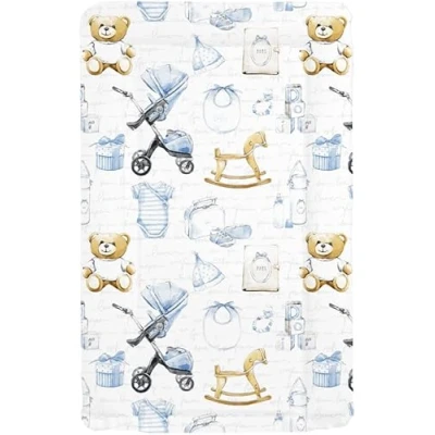 Baby Nursery Waterproof Soft Padded Changing Mat Raised Edges Easy Wipe Clean Nappy Change Pad Cute Lovely Animal Design for Girl Boy (Vintage Blue)