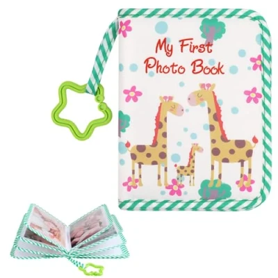 Premium Material: Made of premium material that is comfortable to touch, soft photo album for babies provides a guarantee for baby's safety. My first family album is easy to wash and stays fresh for a long time. Babies can also use our specially designed star-shaped bite ring with confidence. Unique Design: Baby photo album soft has a charming giraffe pattern with bright colors that will attract every child's attention. The cute green star-shaped hook is made of safety fabric, and baby first photo album can be securely hung on strollers and cribs. Suitable Size: The size of this my first photo album for baby is 14x18cm, and its compact size is perfect for babies, while the fabric can be easily cleaned with a damp cloth. On the last page, you will find a baby-safe mirror with a diameter of 8.3cm, and baby photo book adds extra fun to your baby. Capture Precious Moments: Baby photo album is a way to cherish your baby's growth milestones. Whether they are taking their first steps, celebrating a birthday, or a simple family gathering, you can capture these moments forever. Photo album baby has space for multiple photos, so you never have to worry about missing any precious memories. Can be Used as a Gift: Baby photo album soft is a thoughtful and meaningful gift for any special occasion. Whether it is a baby shower, a newborn's first birthday, or a childbirth gift for a new mother, baby photo book will be a hit. Babies will love flipping through the pages, and parents will appreciate the thoughtfulness behind this unique and heartfelt gift.