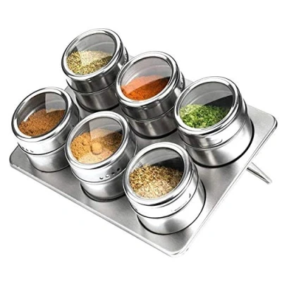 Baby Pig NWSS Stainless Steel Spice Jars, Set of 6 Magnetic Steel/Glass