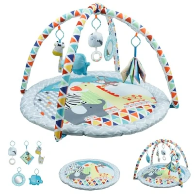 Baby Play Mat, Gym PlayMat for 0 6months Newborn with Hanging Toys and Comfy Mats Floor Playmats & Gyms Toys, Animal Themed Activity 36 Months Babies Infants