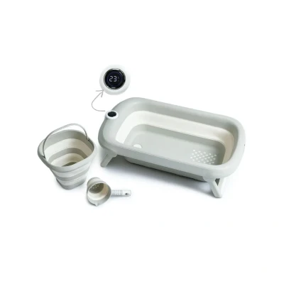 Why Buy Me? Bath time becomes both safe and effortless with the baby plus Thermostatic 3-Piece Bath Set, designed to make parents’ lives easier. Thanks to its foldable design, it takes up almost no space after use, making it an excellent solution for small bathrooms and travel. The integrated thermometer indicator allows you to easily monitor the water temperature, helping you create the ideal bathing environment for your baby. Brand: baby plus Product Type: Bath Equipment Product Sub-type: Bath Tubs Details : General Features Suitable for use from the newborn stage onwards. The integrated thermometer indicator helps you monitor the water temperature. The foldable body design saves space after use. The 45-litre capacity provides a comfortable bathing space for your baby. Non-slip feet offer safe and stable use. The water drainage feature makes emptying the tub easier. The hanging hook provides convenient drying and storage. Its lightweight and portable design is ideal for home and travel use. Material & Safety Made from BPA-free PP (polypropylene) plastic. Free from BPA, phthalates, and PVC. Does not contain harmful chemicals. Produced using baby-safe materials. Usage Open the legs and press down on the body to prepare the tub for use. After use, drain the water, fold, and store easily. Set Includes 1 x 45 L foldable baby bath tub 1 x 10 L water bucket 1 x 1 L scoop