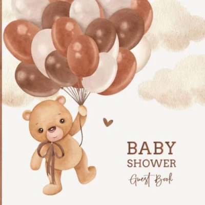 Baby Shower Guest Book: Teddy Bear Sign In with Advice for Parents + Wishes Baby, Gift Log and Keepsake Memory Pages Balloon Neutral Beige Brown