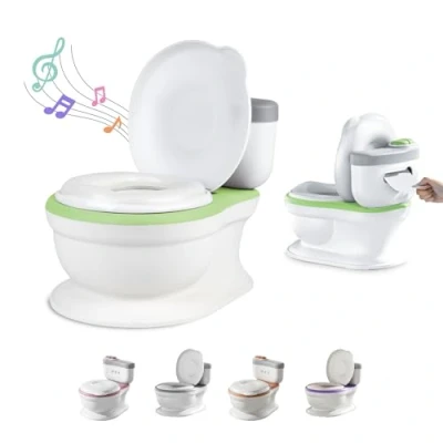 Baby Toilet Potty with Sound for Training and Toddler Comfortable, Non Slip Flush Music Easy to Empty Removable Pot Boys Girls