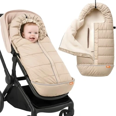 Amazon Cold out, warmth in: Keep your kid warm and cosy on winter walks and autumn strolls with Baby Uma's fleece-lined universal pram footmuff! Soft 'n cosy: With a waterproof exterior and a plush, fleece-lined interior, the OEKO-TEX-certified buggy footmuff keeps your kid dry and toasty come rain, snow, or hail. Stays put: Kept firmly in place by side straps and non-slip backing, our pushchair & pram footmuffs stay securely in place without slipping or sliding. Universal: Measuring 95 x 45 cm, our universal footmuff for stroller adventures fits most pushchairs, buggies, and prams and works with 3-point and 5-point harnesses. Easy on ‘n off: 1. Place the buggy footmuff on the pushchair seat. 2. Feed the harness straps through the back openings. 3. Secure the stroller footmuff using the side straps.