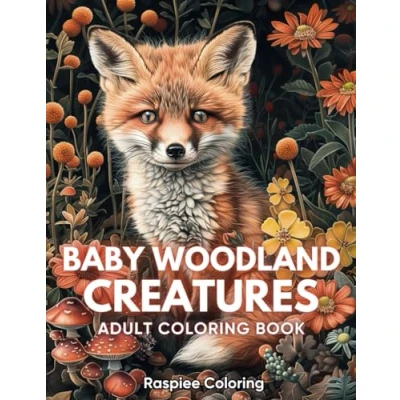 Baby Woodland Creatures Adult Coloring Book: Adorable Animals, Fox, Rabbit, Deer, Bear, Hedgehog, Owl, and More for Stress Relief Relaxation