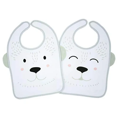 AmazonIdeal for diversification Set of two cotton bibs lined with sponge too funny with their little ears sticking out Soft velcro closure to respect baby's sensitive skin Ideal for diversification Their sponge lining allows a good absorption capacity
