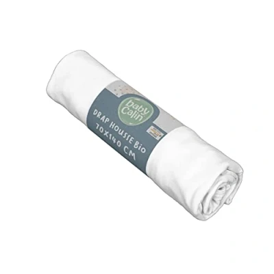 Fitted sheet 70 x 140 x 17 cm 70 x 140 x 17 cm - White 100% organic yarn Shipped in polybag for hygiene reasons. Sold without tie knot.