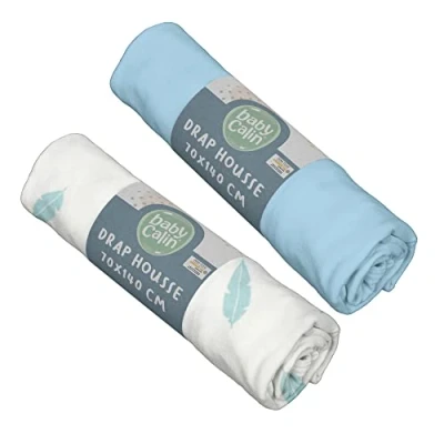 BabyCalin Set of 2 fitted sheets 70x140x17cm Blue/blue feathers OEKO TEX certified