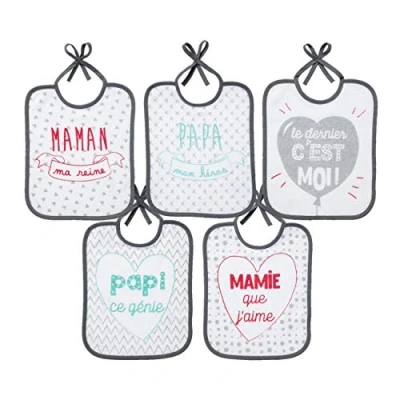 5 x Birth Bibs with Family Message 20 x 25 cm Lace-up fastening Terry Towelling White 50% Cotton 50% Polyester Personalised bib with a message to make every family member happy