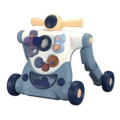 This fun baby walker initially serves as a walking learner, but actually contains four useful functions in one. It’s a walker that gives the child an opportunity to learn and play at the same time. It can be transformed from a walking learner to a ride along and a baby scooter, while also having removable toys with light, sound and balls. 100% PVC Free Walker: For when your child is still learning to move their legs right and needs something to lean on for balance. The child walks behind the walker, holding on to the handles. Weight and extra speed control allow you to adjust the difficulty to the child’s level of development. Ride Along: The child sits on the accompanying seat and drives it like a balance bike/scooter. A smart locking mechanism/ knob by the wheel allows mommy/daddy to configure whether the ride along should be able to turn left and right or only drive straight. Baby Scooter: Once the little one grows older and both motor skills and balance have improved, the kick scooter becomes the next fun challenge. The walker can therefore be transformed to follow the child’s development over several stages. Activity Center: Toys stimulate the child’s senses in different stages of development. Turning knob for the youngest ones. Guitar, telephone and balls with an insert function for those who are slightly older. The removable toys with buttons that trigger lights and sounds are popular with toddlers, and the two balls that a child can play with - or pop into the hole and see them land on the floor below - are also great source of fun.