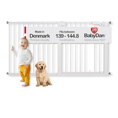 BabyDan Premier, Extra Wide Pressure Fit Stair Gate, Covers openings between 99 106.3 cm/39 41.8 inches, Baby Gate/Safety Metal, White, Made in Denmark (Pet Gate/Dog gate)