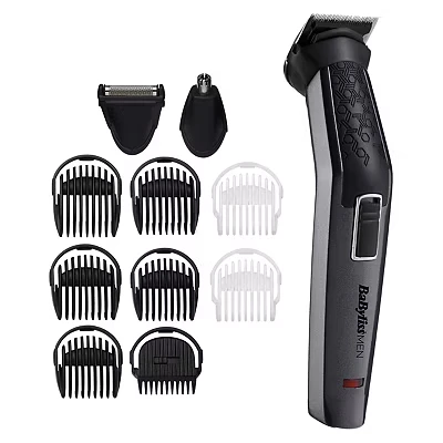 This BaByliss multi-trimmer is your key to a sharp and well-groomed look. The titanium blades let you trim with precision so you can play around with styles or find the perfect stubble length. The 5 beard combs let you tackle everything, from bushy, full beard styles to French forks. Plus, you can tidy up your body hair and sideburns with its detachable cutting heads.Good to know- Say goodbye to your tweezers and scissors, the nose and ear trimmer gets rid of the smallest hairs- 60-minutes of runtime is enough to last you a working week of trims and touch-ups- Going out of town? Take your trimmer wherever you go in the handy travel pouch- The heads are water washable so when you're done, just give them a rinse and they'll be ready for next time