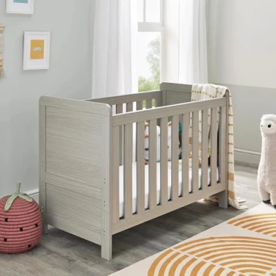 Babymore Caro Mini Cot Bed Grey Wash Baby With Teething Rail Without Mattress, Convertible to Toddler 3 Adjustable Mattress Base Positions Up 5 Years