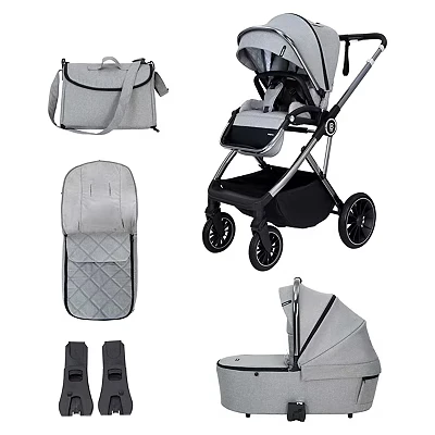 Babymore Chia Pram Pushchair Safety Tested Baby Travel System with All Accessories, Flip and Fold in Pearl Grey, Both Forward Rearward Facing, 0 4 Years Up to 22 Kg