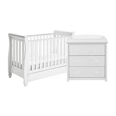 Babymore Eva 2 Piece Nursery Room Set White 1 Baby Cot Bed & Chest Changer With 3 Double Handle Drawers, Wooden Of Drawer Storage Cabinet Furniture
