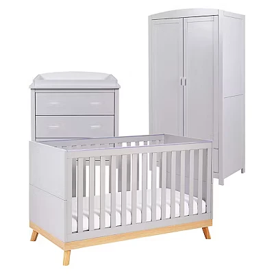Babymore Mona 3 Piece Nursery Room Set Grey 1 Baby Cot Bed & One 2 Door Wardrobe Having Full Size Drawer Chest Changer, Of Storage Cabinet With Removable Changer Top