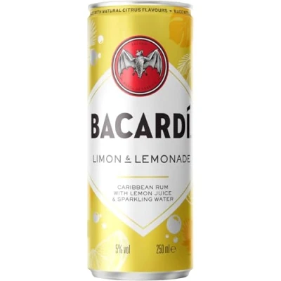 BACARDÍ Limón & Lemonade, 5% ABV, 25cl / 250ml, Ready To Drink Pre Mixed Cocktail Can, Made with Rum and Lemon, Lime, Grapefruit Lemonade