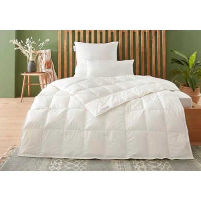 Pure natural product: particularly soft and fluffy down duvet with Down Pass certified filling made from high-quality new white down and feathers and cover made of cotton with fine Mako down batiste - for dreamy cuddly comfort Breathable cover: fine Mako down batiste cover with Medicott finish (100% cotton) - ensures a healthy and dry sleeping environment Filling: white new down and feathers / class 1 / 90% down and 10% feathers / DIN EN 12934, down pass certified - guaranteed not obtained from live animals Easy care: very easy to clean and hygienic, the down duvet is washable up to 60 °C and suitable for tumble dryers, recommended for allergy sufferers, tested for harmful substances according to Oeko-Tex Standard 100 Produced according to German quality standard: the traditional company Badenia has been producing products for a healthy and soothing sleep for over 70 years and is one of the leading manufacturers in this industry in Europe.