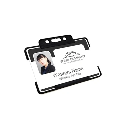Badgemaster Black Your Personalised Business Logo Photo ID Card with Lanyard and Rigid Holder CR80