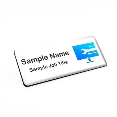With a clear domed finish to a simple plain text name badge gives it that ultra-professional look. Not only will customers be able to identify your staff easily, but they’ll also be impressed by the high quality of their name badges. Large name badge easisly visible from a distance. Durable, soft coating protects the badge from accidnetal damage and scratches. Wide range of fasteners available inlucing: plastic coated magnet, standard magnet, crocodile clip and a pin fasterner.