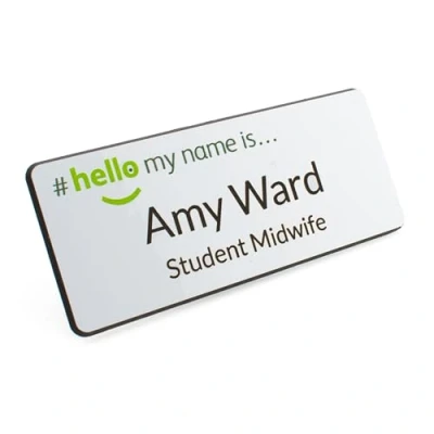 Badgemaster Green Hello My Name is Badge 76 x 32mm (No Dome) White Black