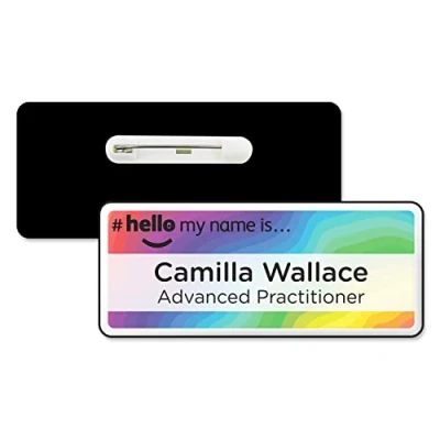 Badgemaster Hello My Name is Bright Gradient Waves Rainbow Background Personalised Premium Domed Bespoke Custom Badge 76 x 32mm White/Black