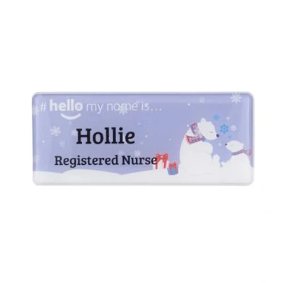 Badgemaster Hello My Name is Christmas Polar Bear Badge Premium Domed GP Practitioner Doctor Healthcare Nurse Medical Staff Clinical Student Assistant White/White 76 x 32mm