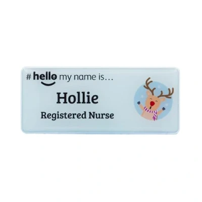 Badgemaster Hello My name is Christmas Reindeer Rudolf Badge Premium Domed GP Practitioner Doctor Healthcare Nurse Medical Staff Clinical Student Assistant White/White 76 x 32mm