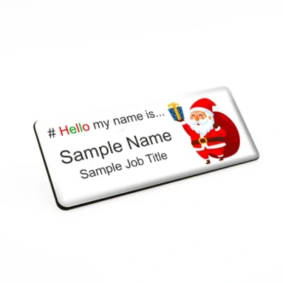 Badgemaster Hello My Name is Christmas Santa Premium Durable Staff Badge 76 x 32mm White/Black