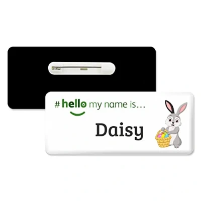 Badgemaster Hello My Name is Easter Bunny Personalised Premium Domed Bespoke Custom Staff Badge 76 x 32mm White Black