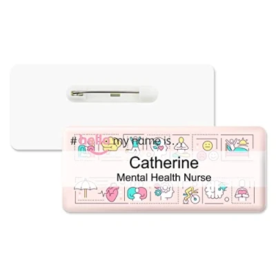 Badgemaster Hello My Name is Mental Health Wellbeing Badge Premium Domed White 76 x 32mm Doctor Student Nurse Clinical Practitioner Healthcare Assistant Medical Staff GP