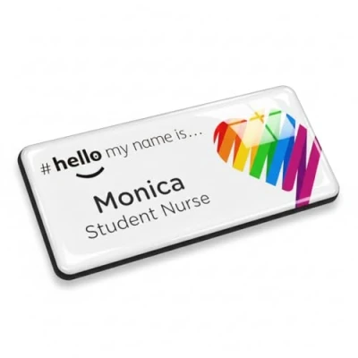 With a clear domed finish to a simple plain text name badge gives it that ultra-professional look. Not only will customers be able to identify your staff easily, but they’ll also be impressed by the high quality of their name badges. The clear polyurethane domed finish adds a layer of protection and professionalism, providing depth and a 3D look to your name badge. All our badges are finished to the highest quality, and as all our badge manufacturing is done in our purpose-built facility.