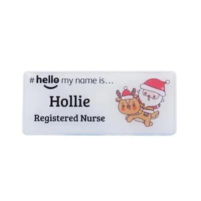 Badgemaster Hello My Name is Reindeer Riding Badge Premium Domed GP Practitioner Doctor Healthcare Nurse Medical Staff Clinical Student Assistant