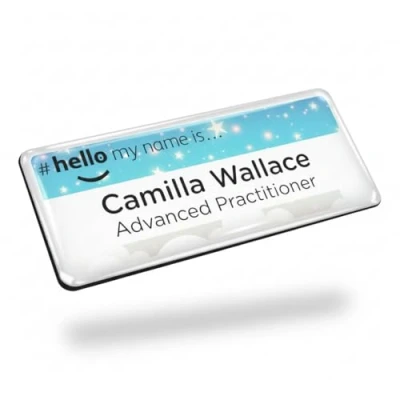 With a clear domed finish to a simple plain text name badge gives it that ultra-professional look. Not only will customers be able to identify your staff easily, but they’ll also be impressed by the high quality of their name badges. The clear polyurethane domed finish adds a layer of protection and professionalism, providing depth and a 3D look to your name badge. All our badges are finished to the highest quality, and as all our badge manufacturing is done in our purpose-built facility.