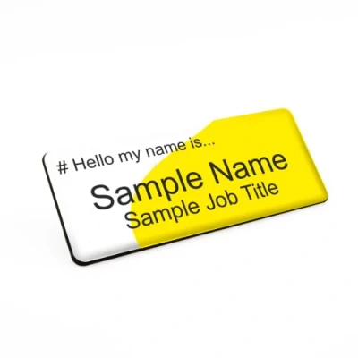 Badgemaster Hello My Name is Yellow Slide Premium Durable Staff Badge 76 x 32mm White/Black