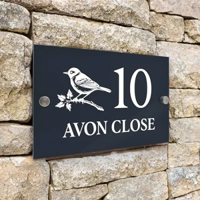 Badgemaster Modern Anthracite House Number Sign Plaque Stainless Steel Standoffs 20cm x 13cm Bird