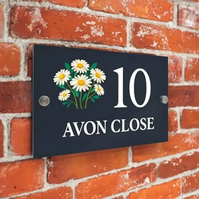 Badgemaster Modern Anthracite House Number Sign Plaque Stainless Steel Standoffs 20cm x 13cm Daisy