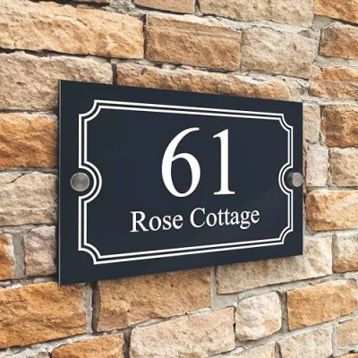 Badgemaster Modern Anthracite House Number Sign Plaque Stainless Steel Standoffs 20cm x 13cm Double White Border
