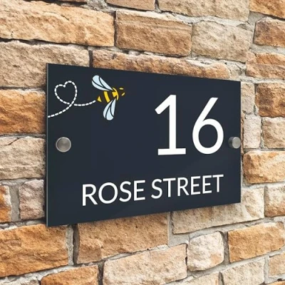 Badgemaster Modern Anthracite House Number Sign Plaque Stainless Steel Standoffs 20cm x 13cm Flying Bee