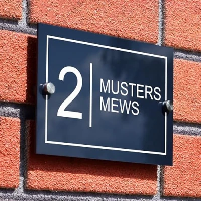Badgemaster Modern Anthracite House Number Sign Plaque Stainless Steel Standoffs 20cm x 13cm Full White Border