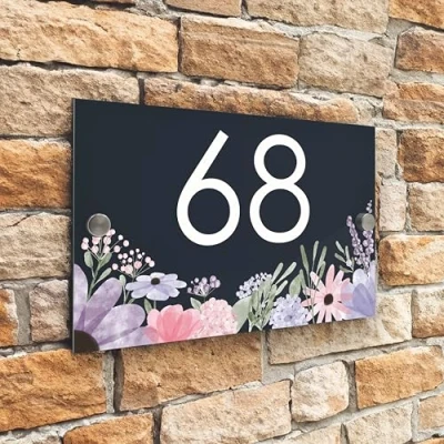Badgemaster Modern Anthracite House Number Sign Plaque Stainless Steel Standoffs 20cm x 13cm Pastel Flowers Bottom