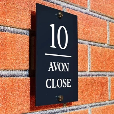 EASY INSTALLATION: Our Anthracite House Number Sign can be effortlessly mounted using the provided stainless steel standoffs and screws, making it a quick and hassle-free addition to your home's exterior. MODERN DESIGN: With its sleek anthracite finish and contemporary styling, our house number sign adds a touch of sophistication to any facade, enhancing the overall aesthetic appeal of your property. DURABLE MATERIALS: Crafted from high-quality materials, including weather-resistant stainless steel standoffs, our house number sign is built to withstand the elements, ensuring long-lasting durability and performance. CLEAR VISIBILITY: Featuring large, bold lettering against a contrasting background, our house number sign offers excellent readability from a distance, ensuring that your address is easily visible to visitors, delivery drivers, and emergency responders. VERSATILE USAGE: Whether you live in a modern urban loft or a traditional suburban home, our versatile house number sign complements a variety of architectural styles, adding a stylish finishing touch to your exterior decor.