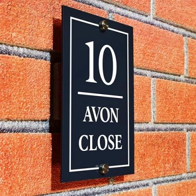 Badgemaster Modern Vertical Anthracite House Number Sign Plaque Stainless Steel Standoffs 13cm x 20cm Full Border